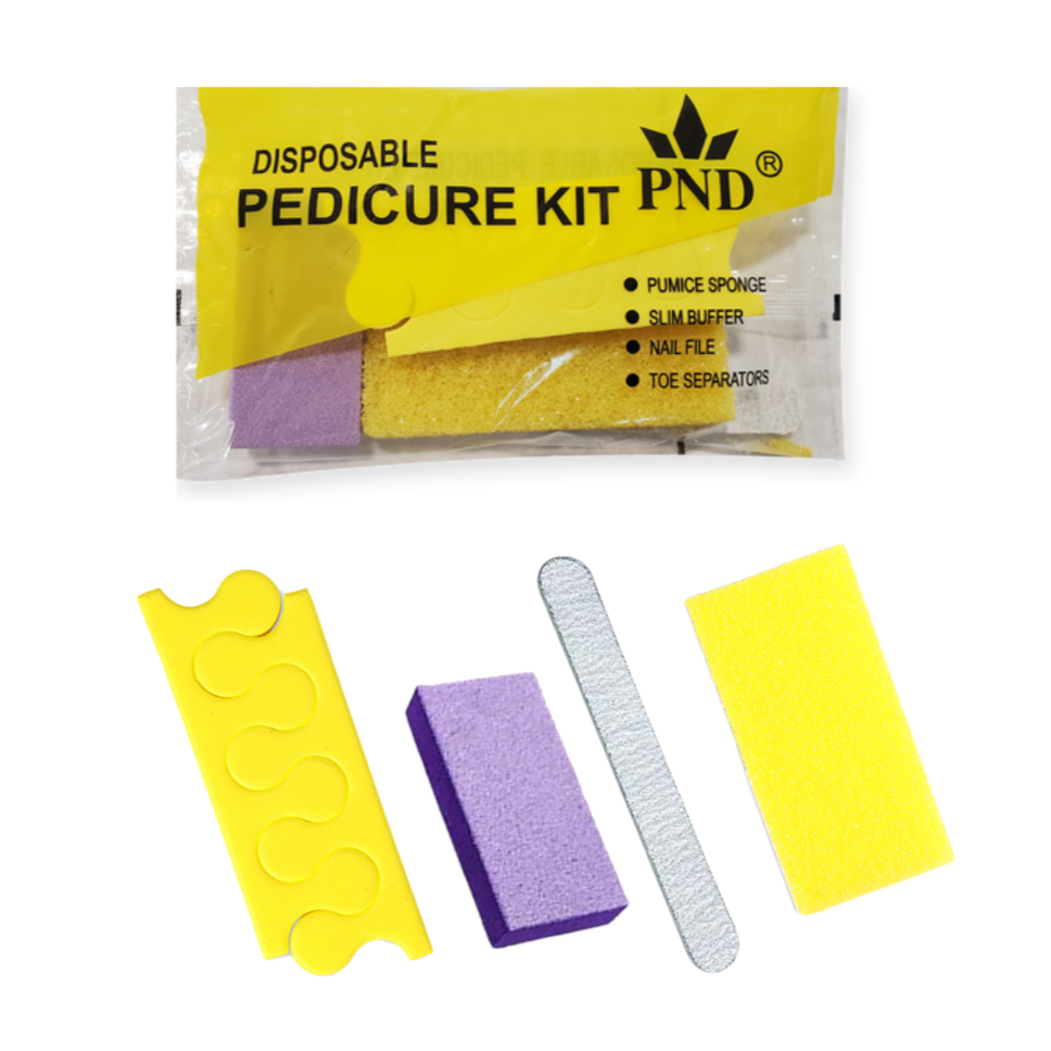 The essentials for a quality pedicure. Includes 1 Pumice Sponge, 1 Mini Nail File, 1 pair of toe separators and 1 Slim Buffer for softer smoother feet