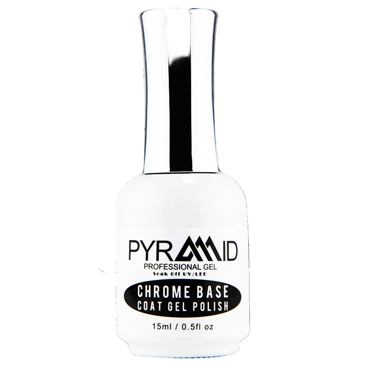 Pyramid Chrome Base Coat Gel should be applied before applying any type of chrome or rub on powder. Apply one coat then cure for 60 second before rubbing on a chrome or hologram powder.
