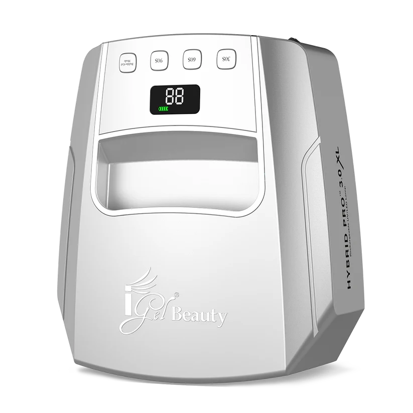 Maximize your full potential with iGel Beauty's HYBRID PRO 3.0 Wireless Rechargeable UV/LED Lamp, now available in XL! Enjoy state of the art sleekness with our lightweight and portable gel curing lamp while extending your reach for high-quality curing with 6 additional professional grade high performance UV/LED bulbs. The Hybrid Pro 3.0 XL's spacious design allows length loving nail enthusiasts an extended reach and more room capacity to cure. The 20% reduction in weight gives it a seamless efficient effort for all your travel needs.