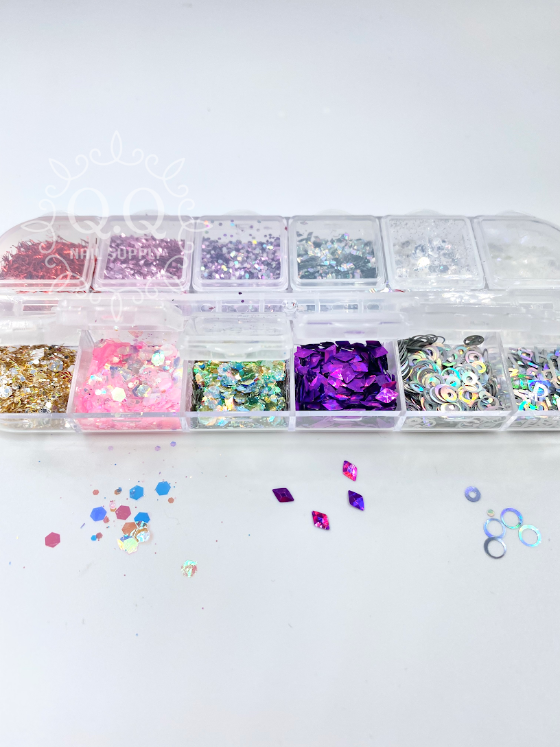 These beautiful bright and colorful nail art sequins comes in 12 different colors and designs.