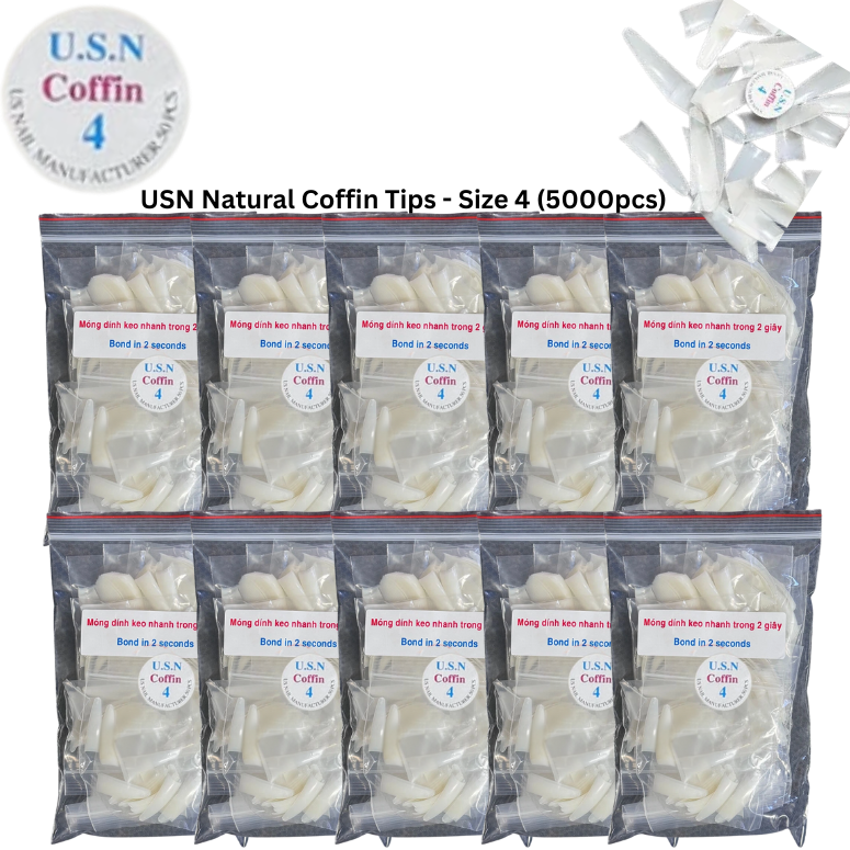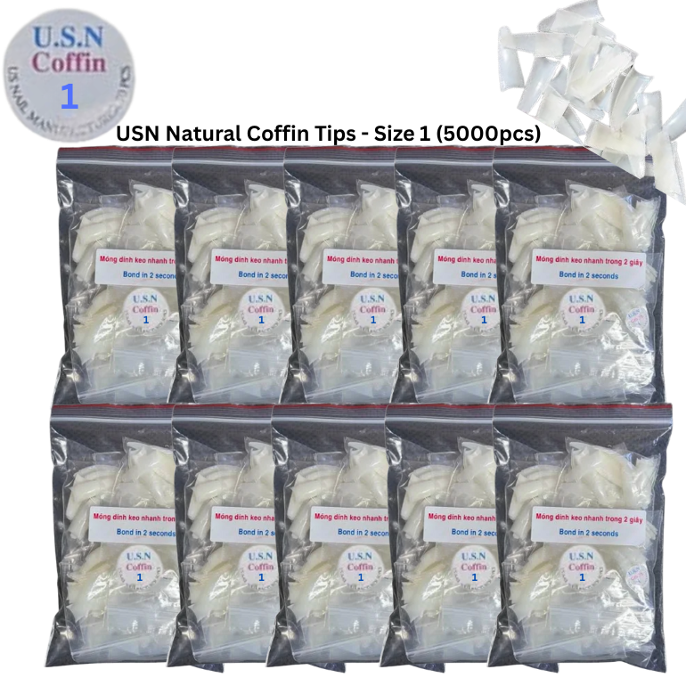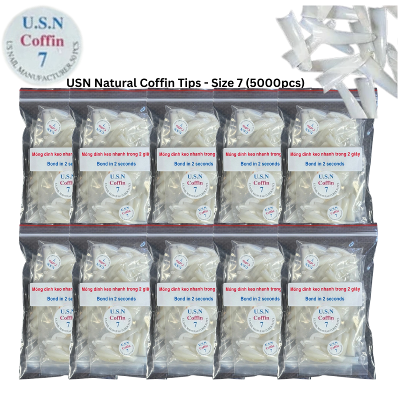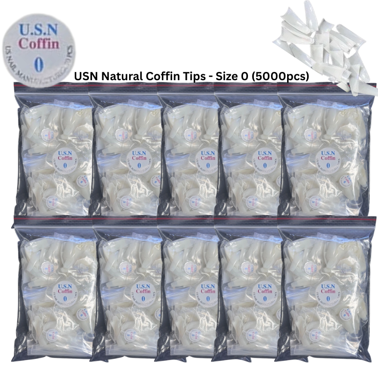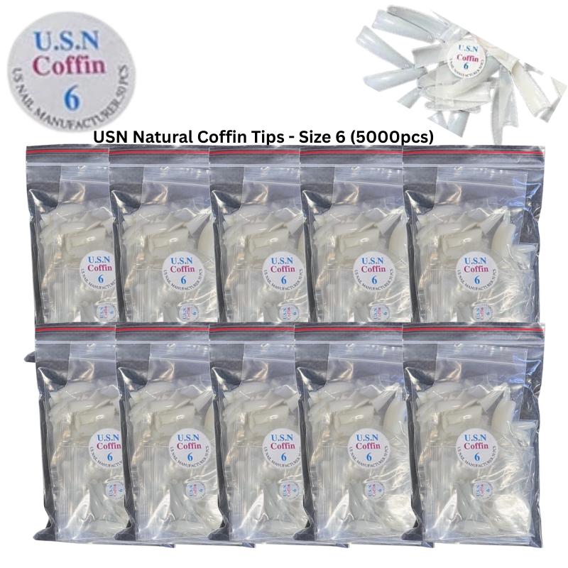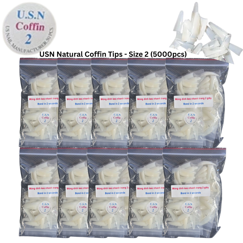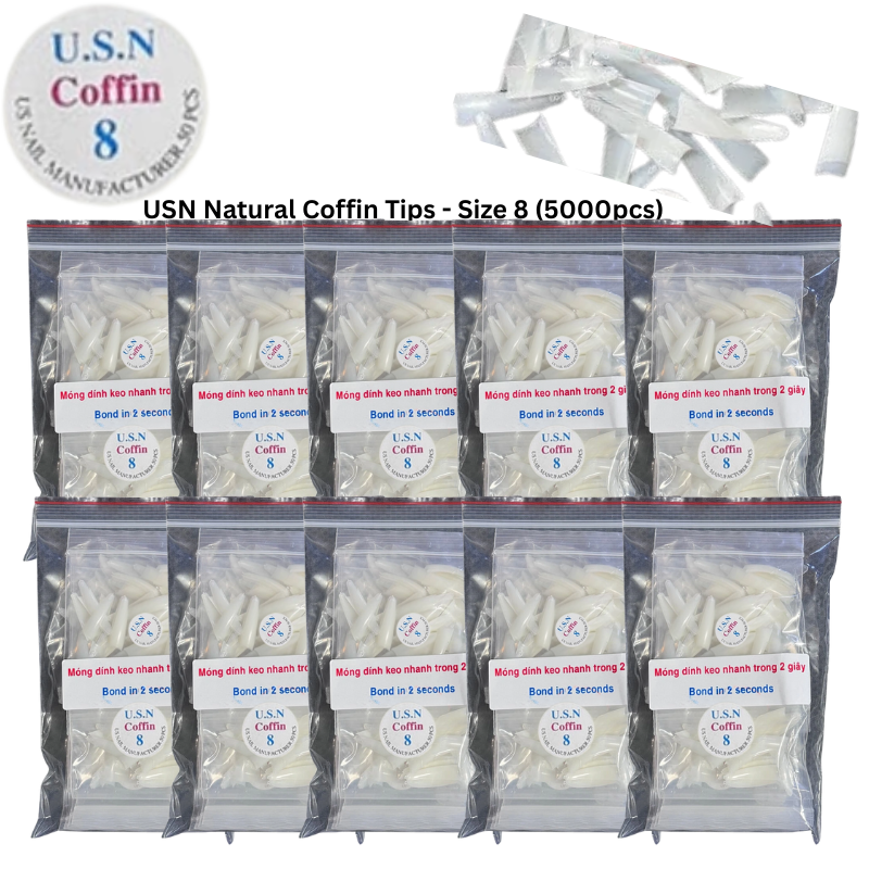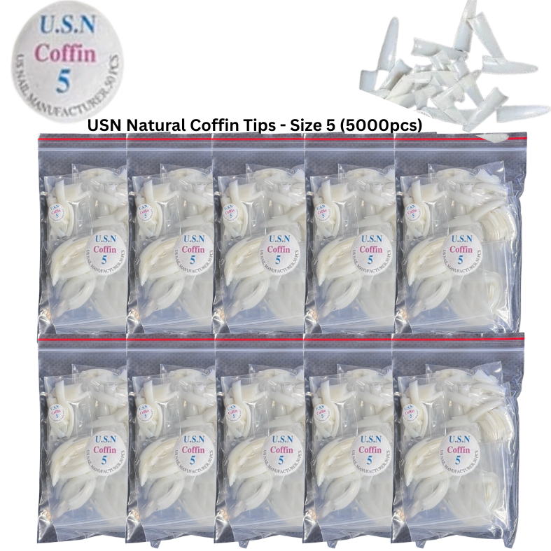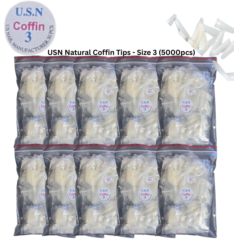 Natural Coffin Tip - Each size includes a total of 5000pcs (10 Bags of 500pcs)