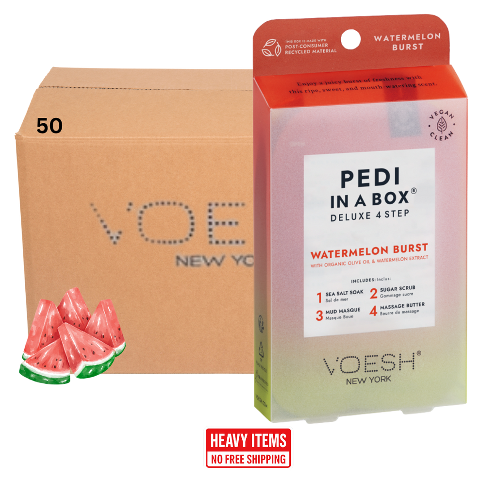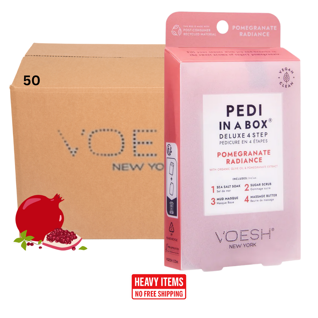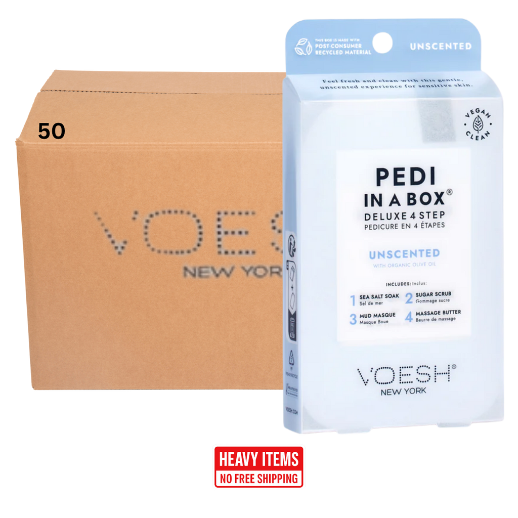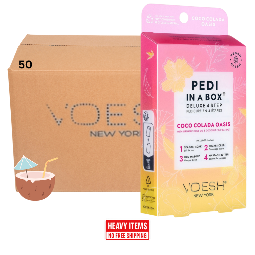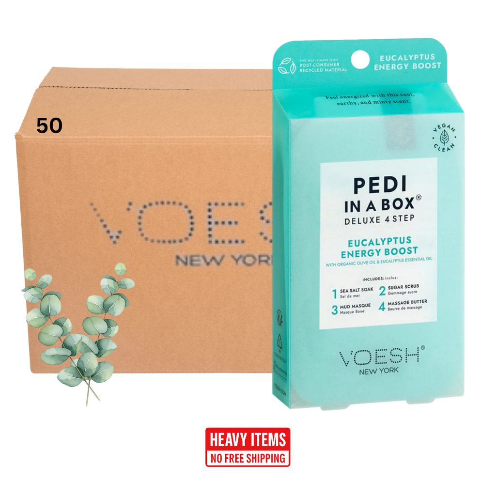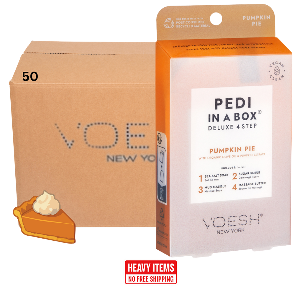 Voesh's 4 Step Pedi-In-A-Box is the cleanest and most hygienic Spa Pedicure solution. Enriched with key ingredients to give your feet the nutrition it needs. Each product is individually packed with the right amount for a single pedicure. Vegan Formula. Cruelty Free. Paraben Free. Gluten Free.