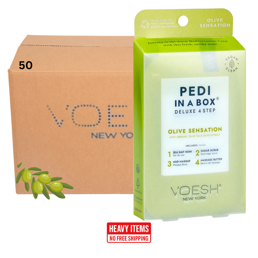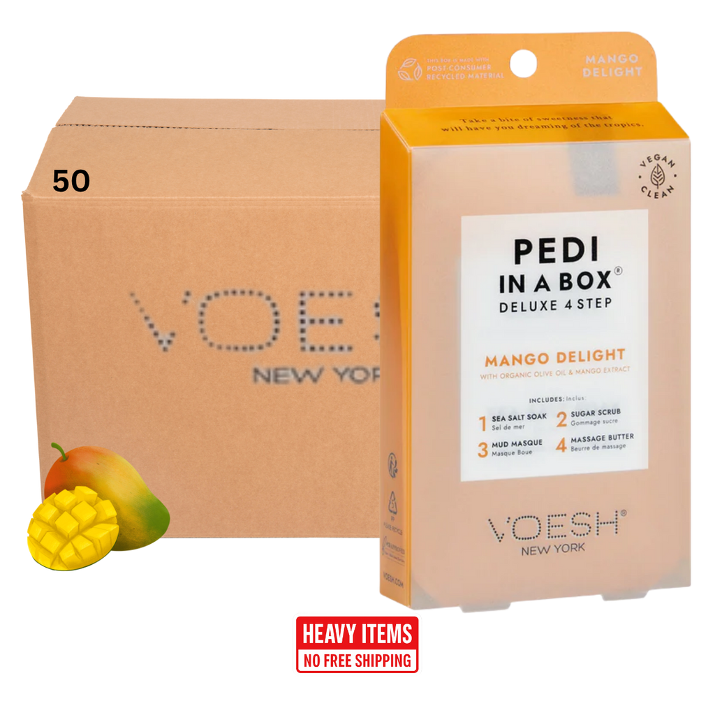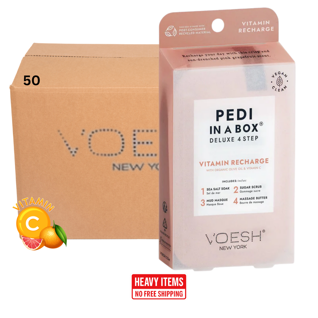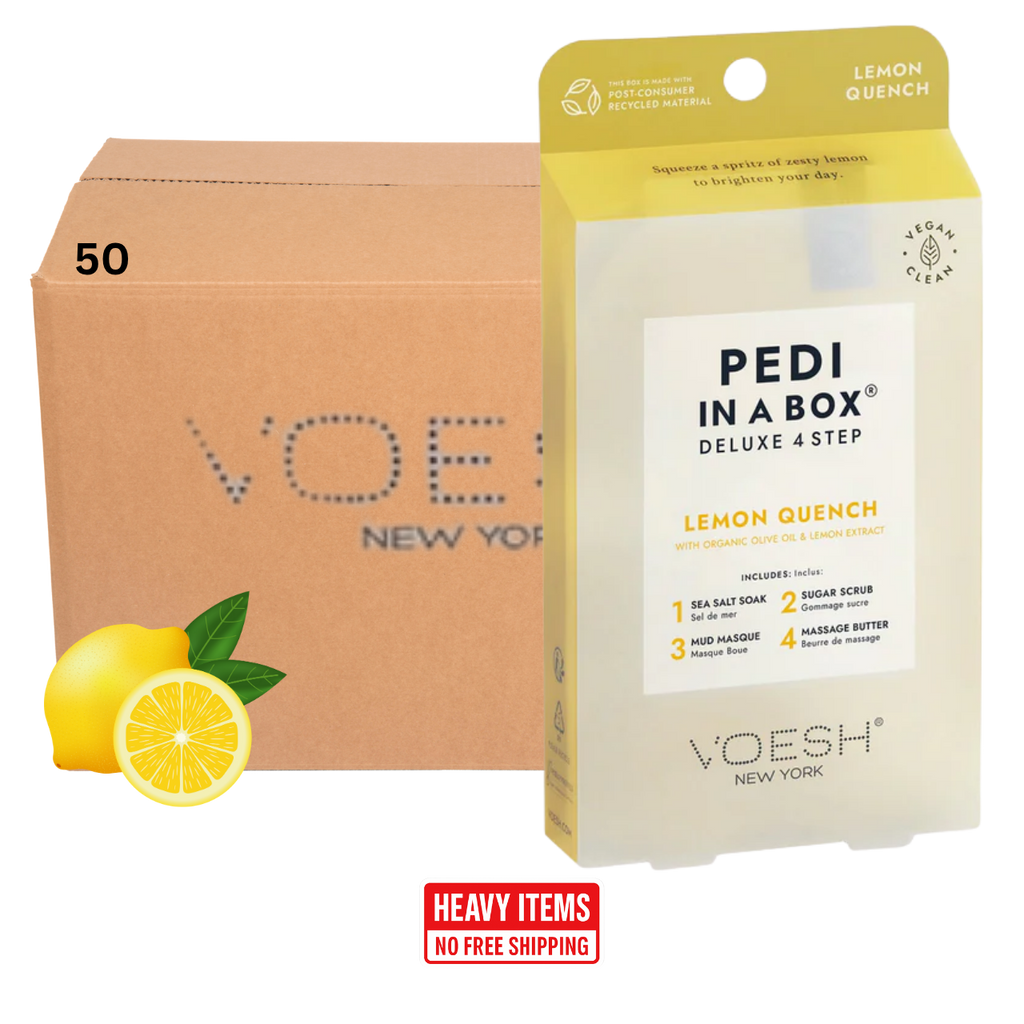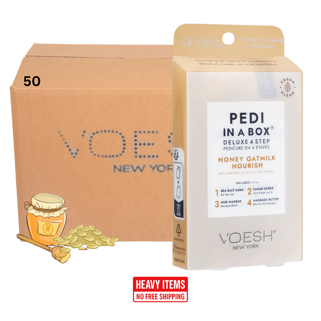 Voesh's 4 Step Pedi-In-A-Box is the cleanest and most hygienic Spa Pedicure solution. Enriched with key ingredients to give your feet the nutrition it needs. Each product is individually packed with the right amount for a single pedicure. Vegan Formula. Cruelty Free. Paraben Free. Gluten Free.
