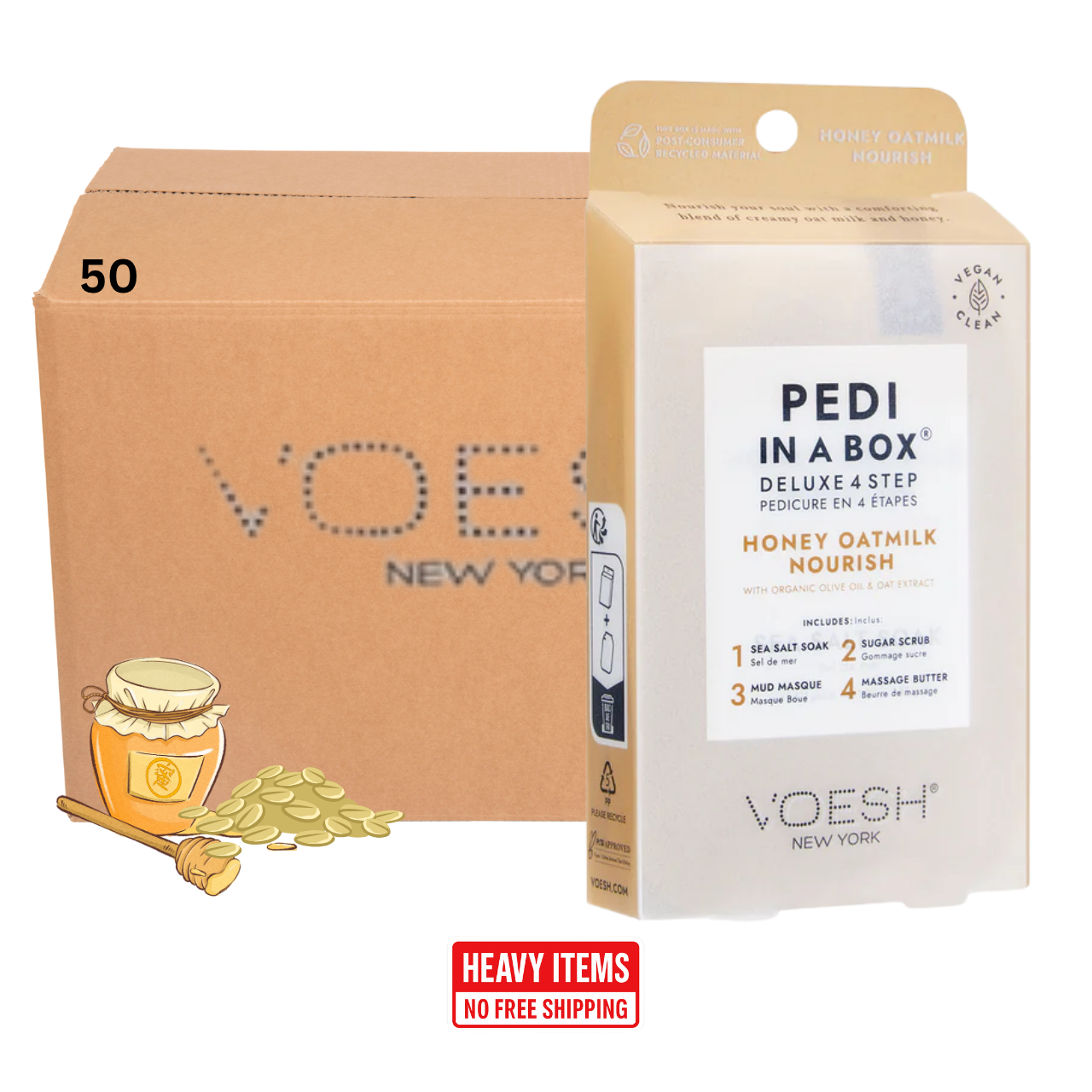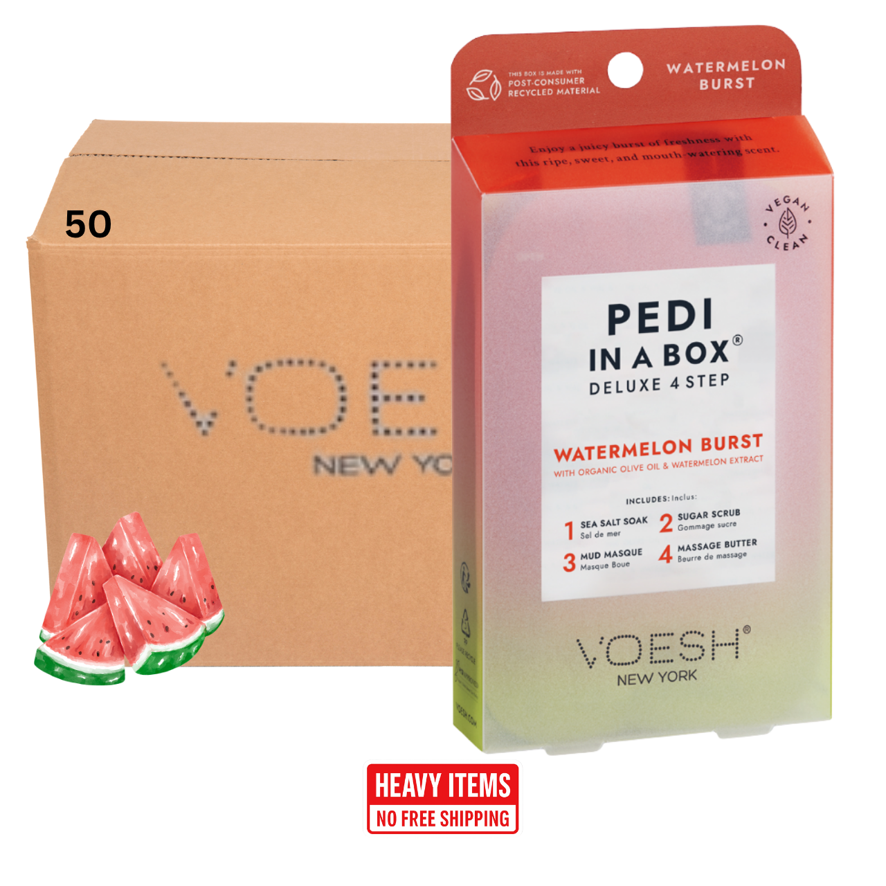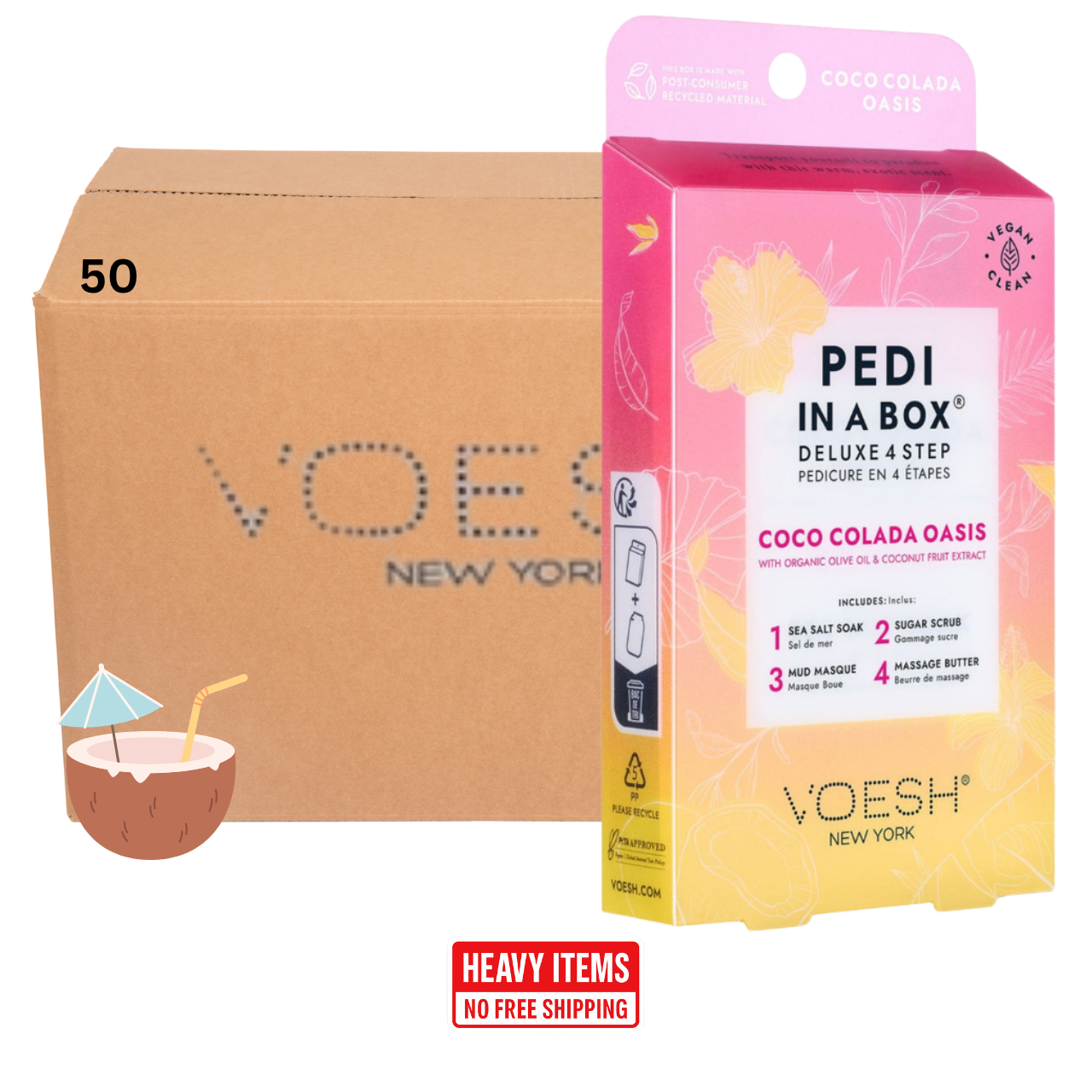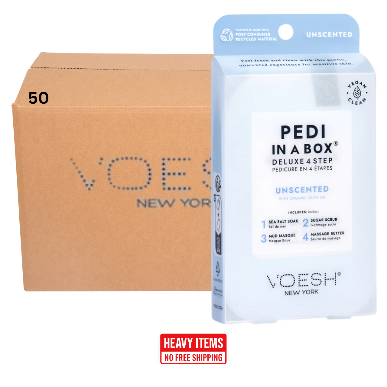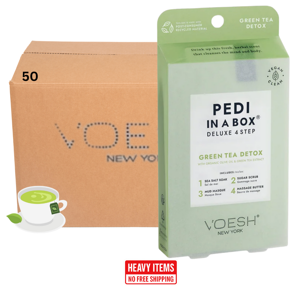 Voesh's 4 Step Pedi-In-A-Box is the cleanest and most hygienic Spa Pedicure solution. Enriched with key ingredients to give your feet the nutrition it needs. Each product is individually packed with the right amount for a single pedicure. Vegan Formula. Cruelty Free. Paraben Free. Gluten Free.