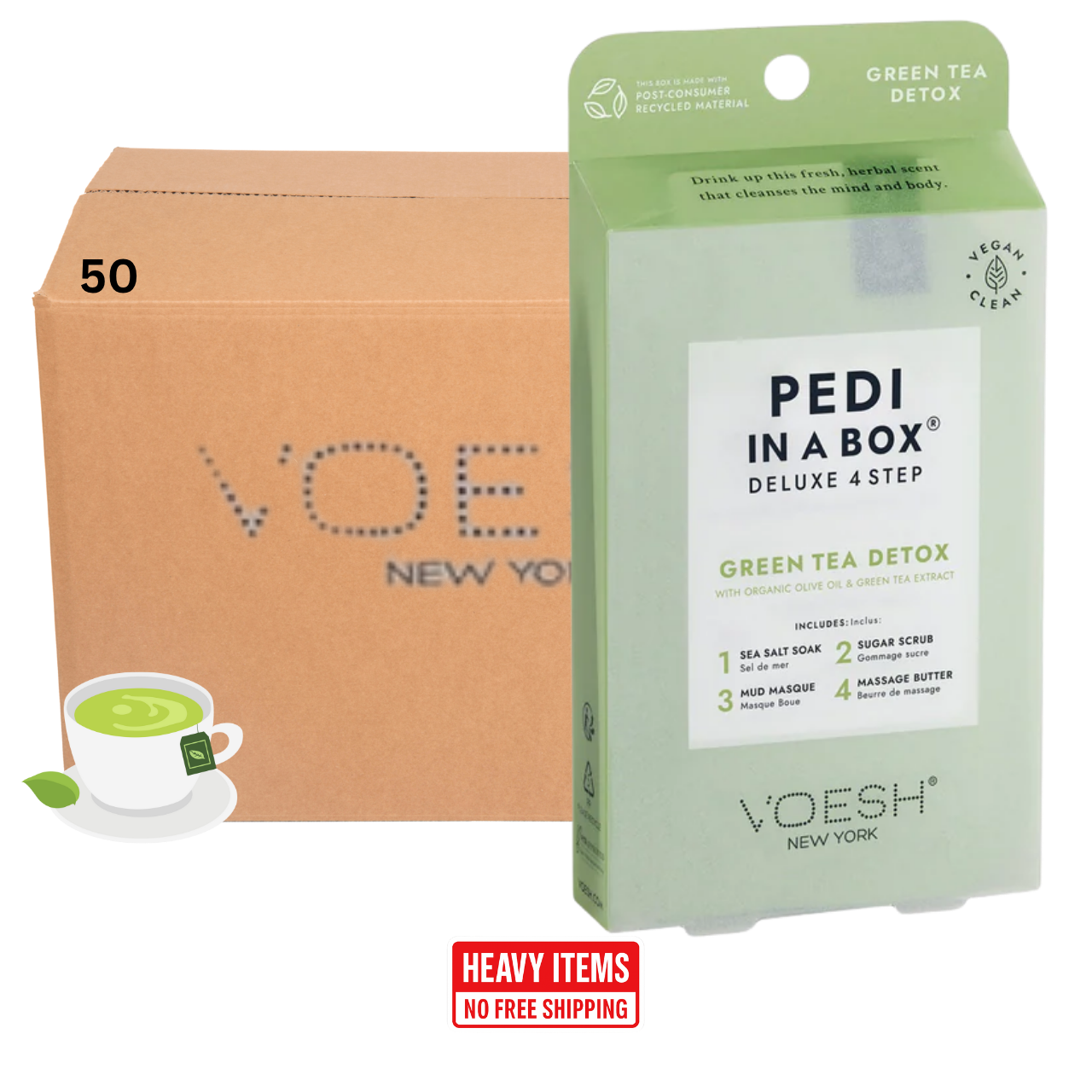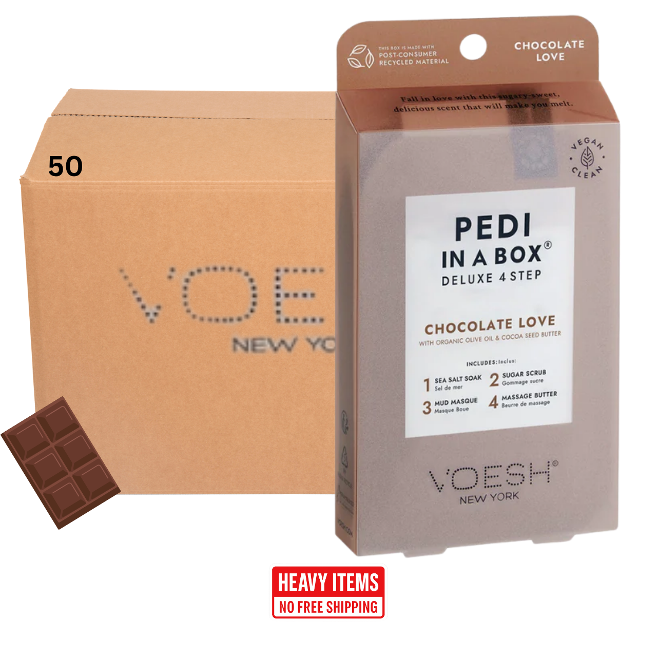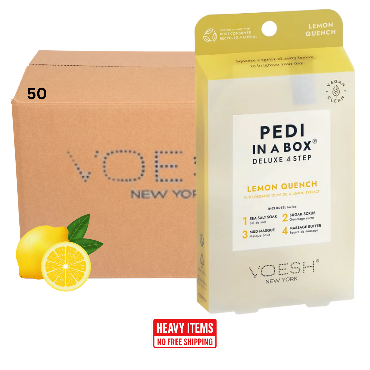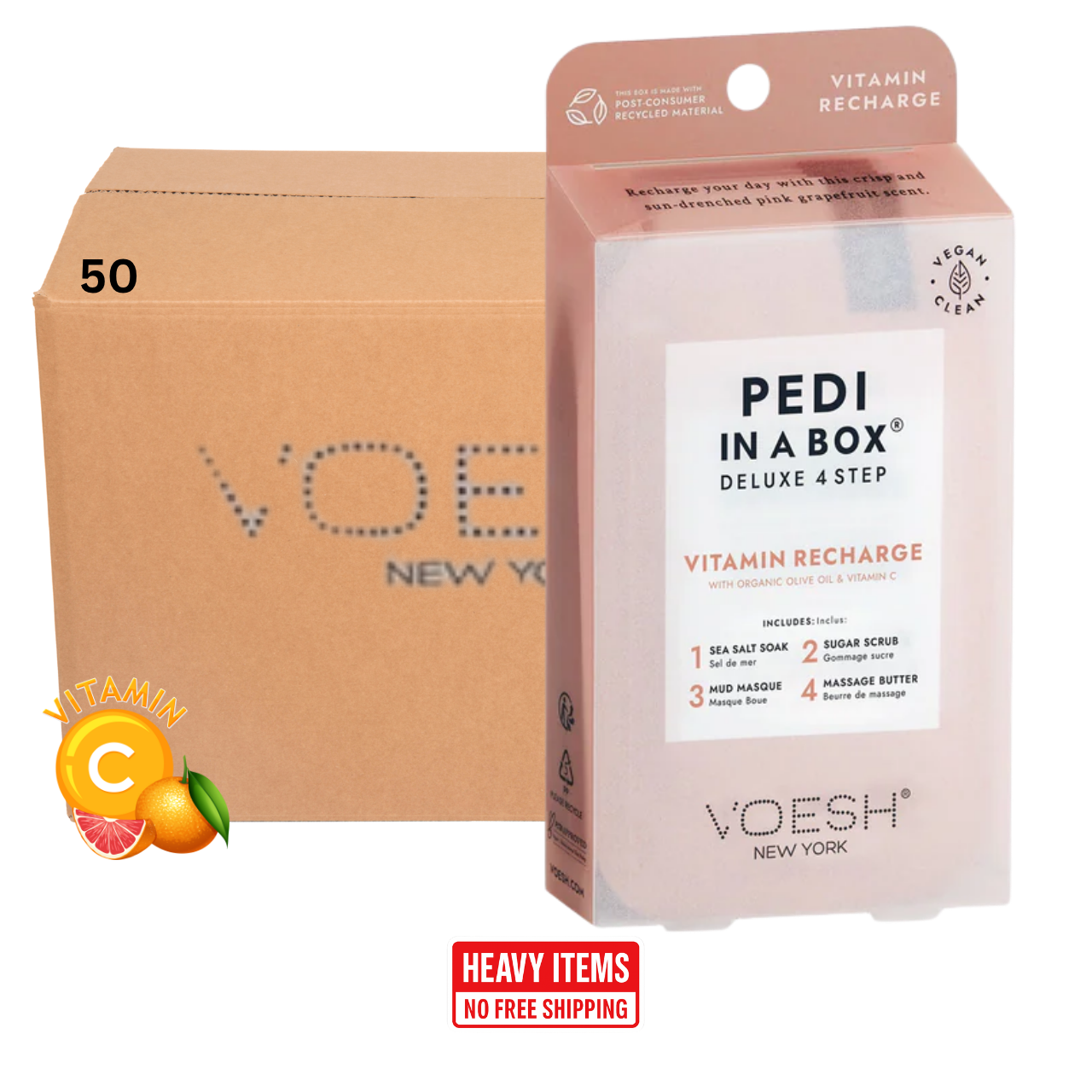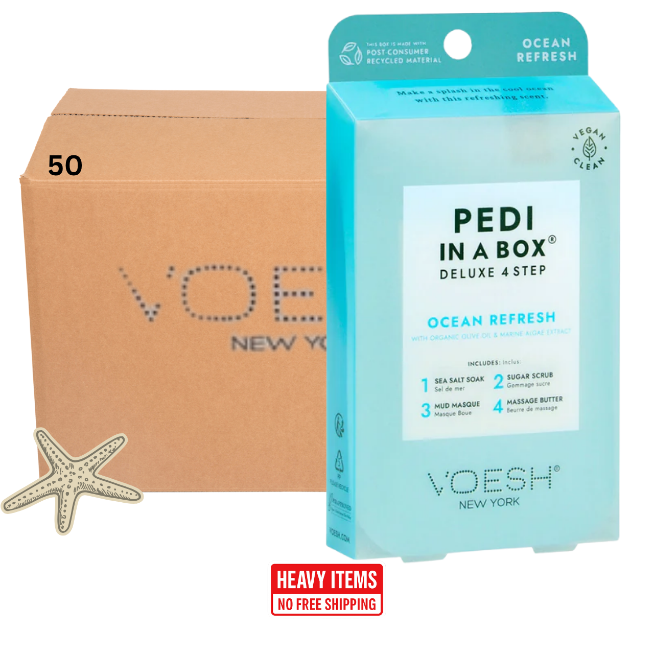 Voesh's 4 Step Pedi-In-A-Box is the cleanest and most hygienic Spa Pedicure solution. Enriched with key ingredients to give your feet the nutrition it needs. Each product is individually packed with the right amount for a single pedicure. Vegan Formula. Cruelty Free. Paraben Free. Gluten Free.