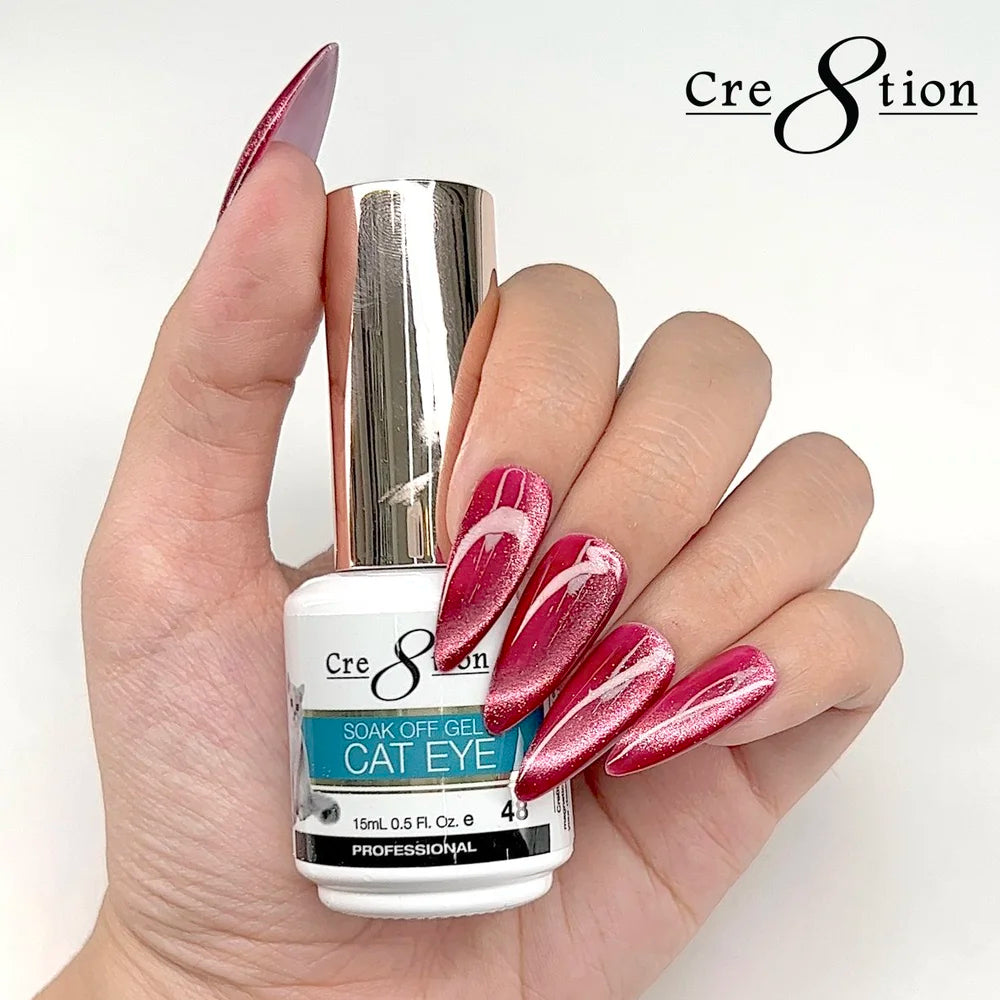 Cre8tion Cat Eye Soak off Gel has magnetic pigments that can be shaped to your desire.