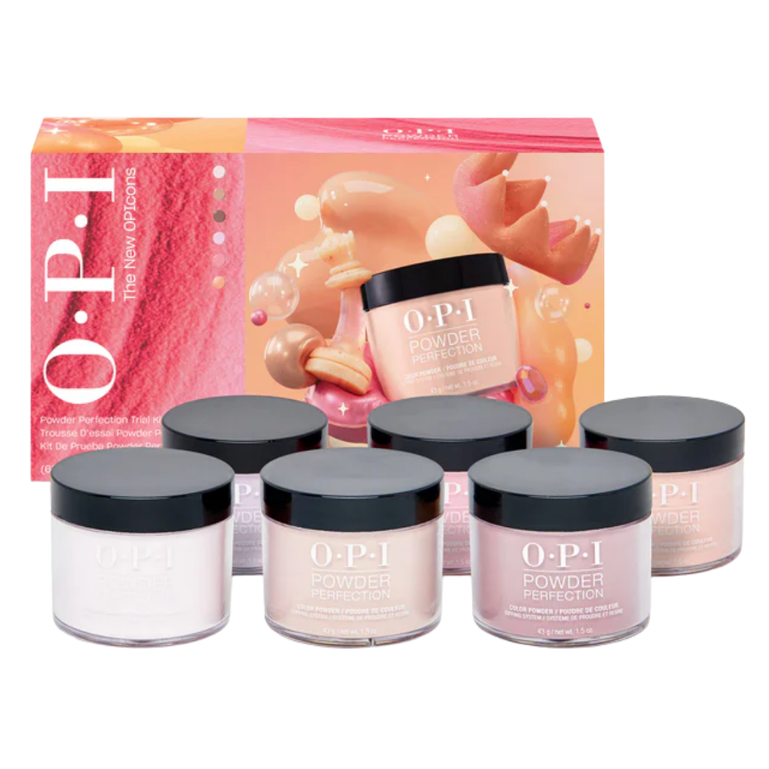 A dreamy dip powder featuring buildable, shimmery sheer finishes your clients will love. Combines pastel Powder Perfection shades with creamy neutrals, lilac, pink, and peachy shimmer for a versatile, high-shine look.