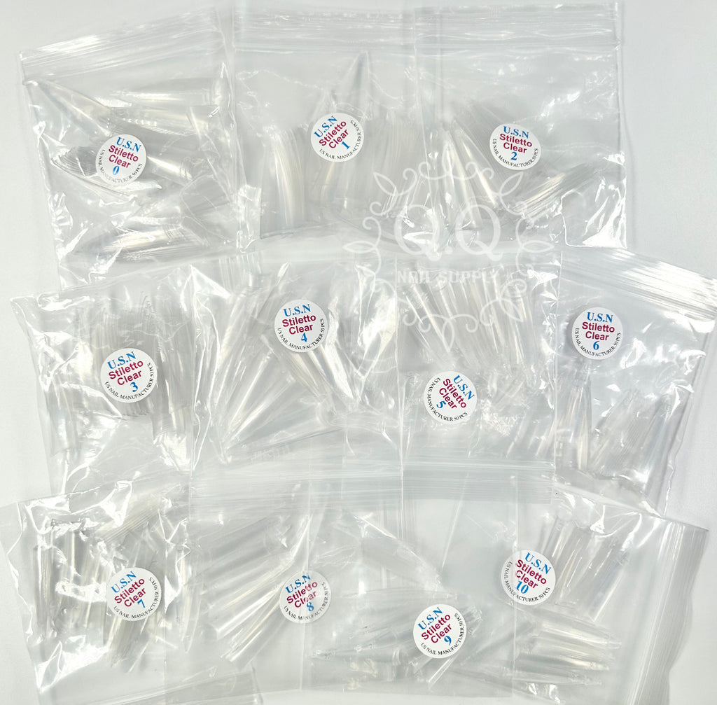 Clear Stiletto tips - Thin & flexible - Includes all sizes 0-10