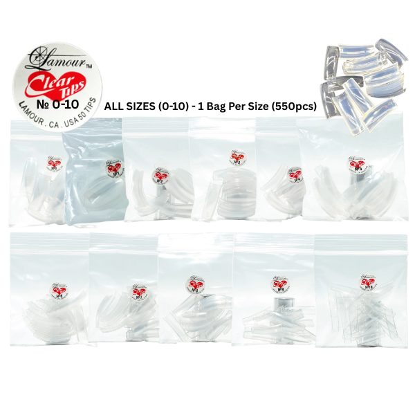 Clear tips - Thin & flexible - Includes all sizes 0-10