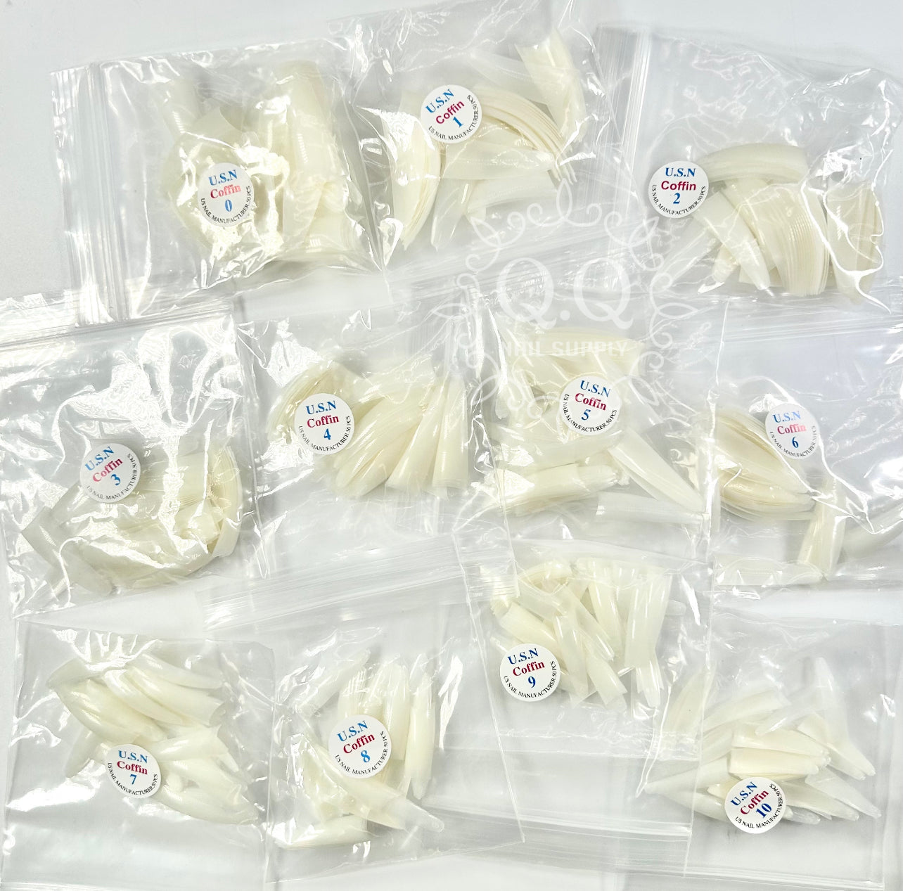 Natural Coffin tips - Thin & flexible - Includes all sizes 0-10