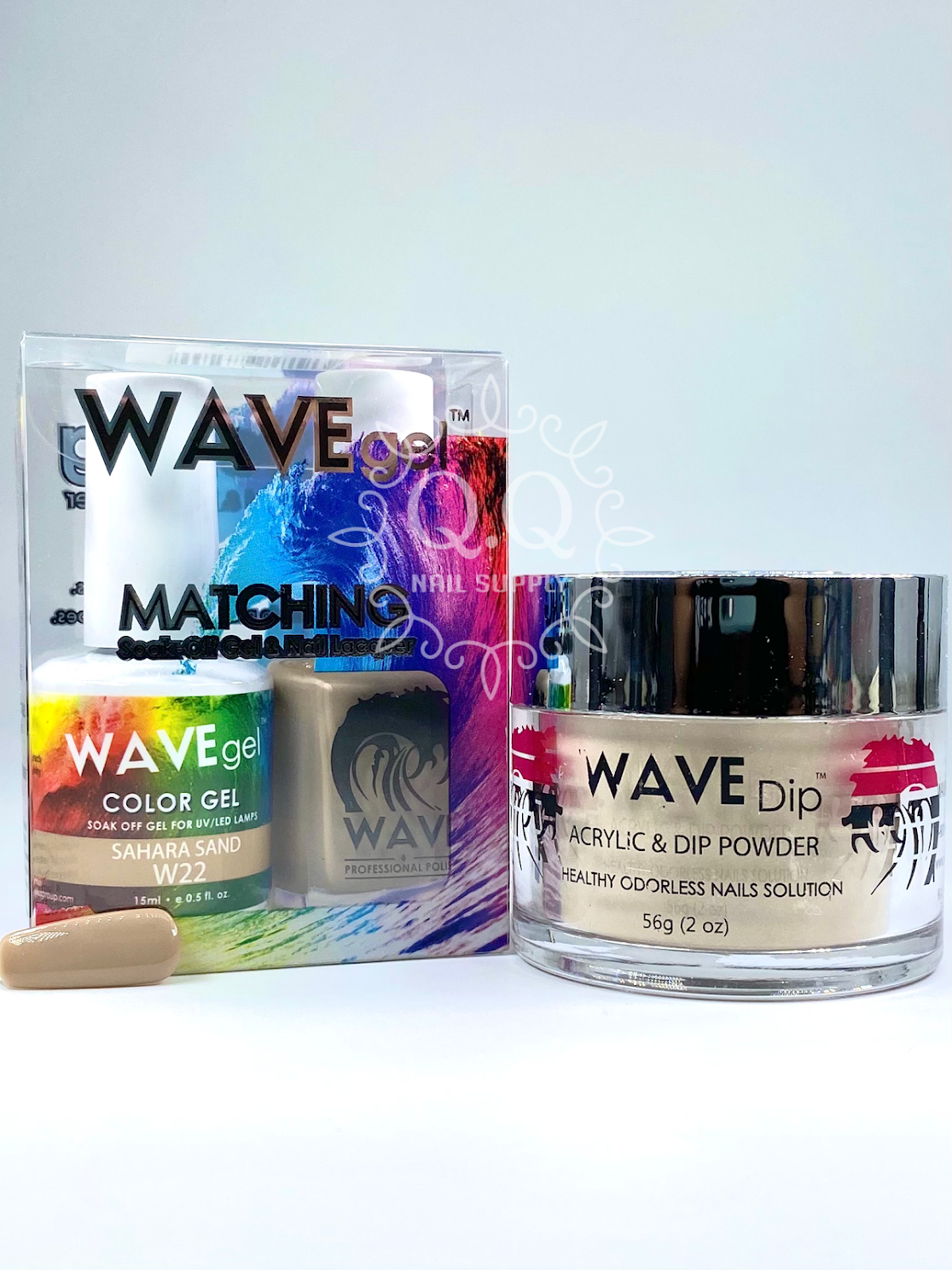 Featuring the latest Gel and Lacquer formulas, Wave Gel is the premier professionals choice for Gel Polish Nail Lacquer and Dip Powder. 3in1 Dip, Acrylic, and Design powder (2oz). Matching Gel (0.5oz) & Regular Polish (0.5oz)