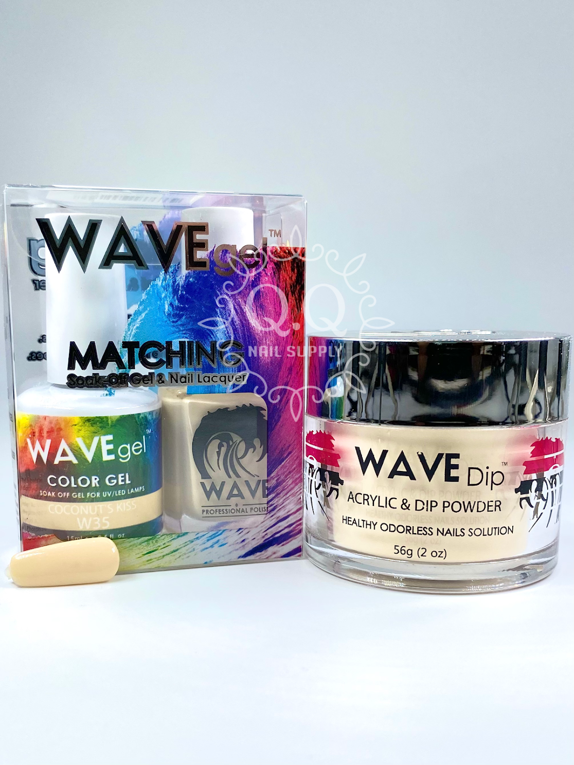 Featuring the latest Gel and Lacquer formulas, Wave Gel is the premier professionals choice for Gel Polish Nail Lacquer and Dip Powder. 3in1 Dip, Acrylic, and Design powder (2oz). Matching Gel (0.5oz) & Regular Polish (0.5oz)