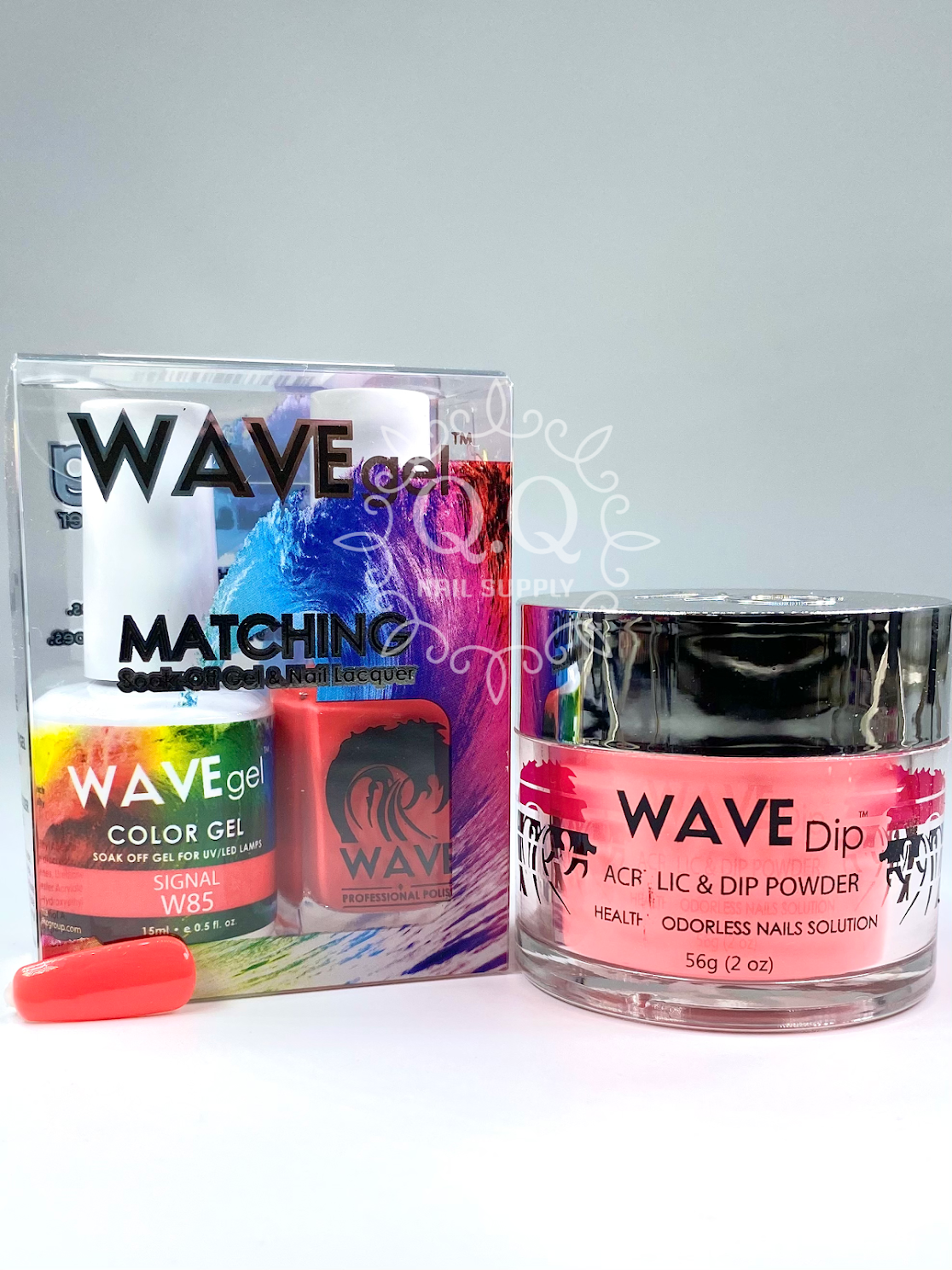 Featuring the latest Gel and Lacquer formulas, Wave Gel is the premier professionals choice for Gel Polish Nail Lacquer and Dip Powder. 3in1 Dip, Acrylic, and Design powder (2oz). Matching Gel (0.5oz) & Regular Polish (0.5oz)