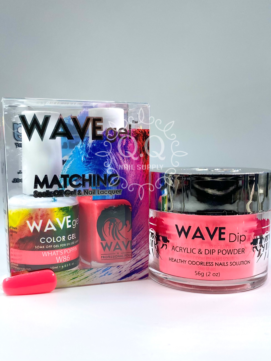 Featuring the latest Gel and Lacquer formulas, Wave Gel is the premier professionals choice for Gel Polish Nail Lacquer and Dip Powder. 3in1 Dip, Acrylic, and Design powder (2oz). Matching Gel (0.5oz) & Regular Polish (0.5oz)