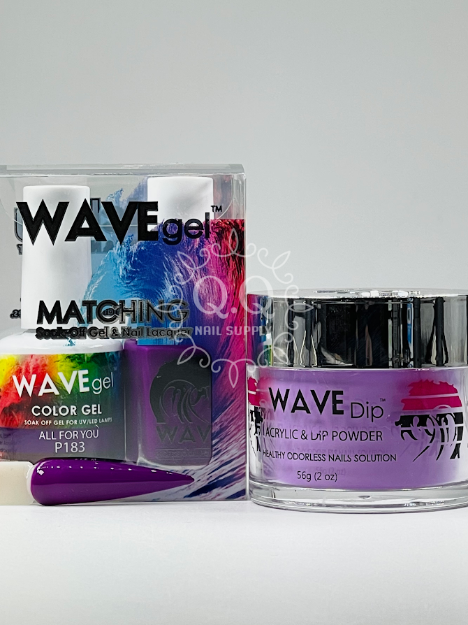 Featuring the latest Gel and Lacquer formulas, Wave Gel is the premier professionals choice for Gel Polish Nail Lacquer and Dip Powder. 3in1 Dip, Acrylic, and Design powder (2oz). Matching Gel (0.5oz) & Regular Polish (0.5oz)